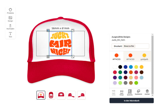 Bei uns kannst du aus einer riesigen Auswahl an Produkten ein passendes Motiv aussuchen. Ändere die Farbe des Motivs und des Produkts oder füge deinen eigenen persönlichen Text, ein Foto oder dein Design hinzu. Wähle einfach eine passende Schriftart und Farbe aus, arrangiere dein Motiv, und erhalte dein selbstgestaltetes Produkt direkt nach Hause geschickt!
